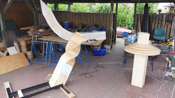 Was wie Rost aussieht ist in Wirklichkeit täuschend echte Farbe, hinter der sich eine massive Holzskulptur
